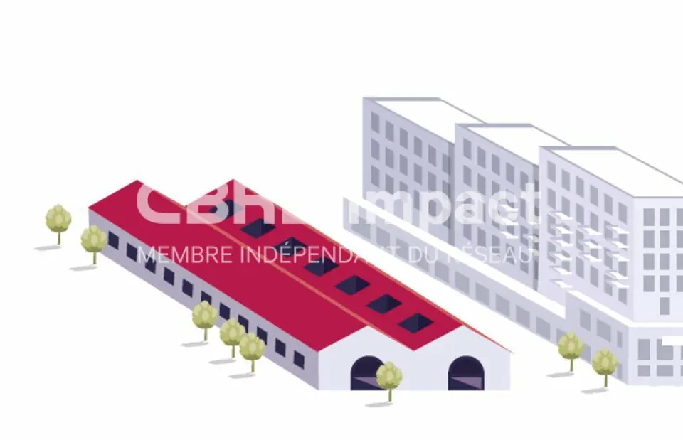– une grande halle à réhabiliter de 3050 m² environ comprenant des locaux d’activité pour une surface de 1540 m² environ divisibles, 340 m² environ de brocante et 1200 m² de bureaux.