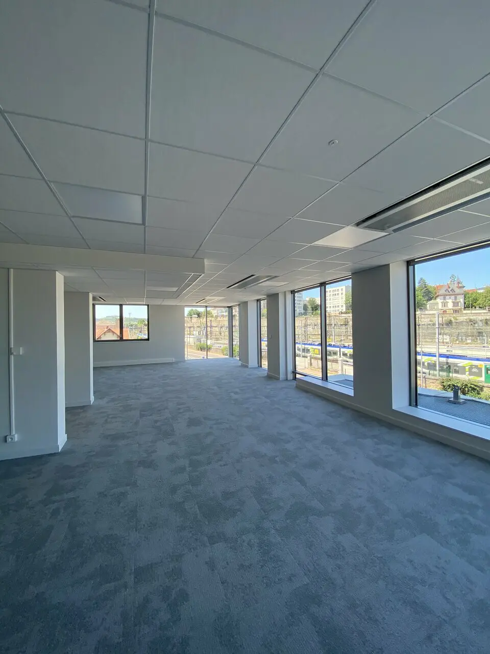 Surfaces de bureaux Tour SIGMA, entièrement rénovées, prestations de très grande qualité.. Plusieurs plateaux disponibles aux 2ème, 3ème et 4ème étages à cloisonner et à aménager.. Cloisonnement et aménagement à la demande peut être réalisé mais non financé par le bailleur.. Certains plateaux sont déjà aménagés de salles de réunions et de bulles, de phone box, buffalos.. Plusieurs espaces peuvent être partagés, sur demande :Grande salle de réunion en RDC.CafétériaProximité immédiate de la gare et du centre-ville.