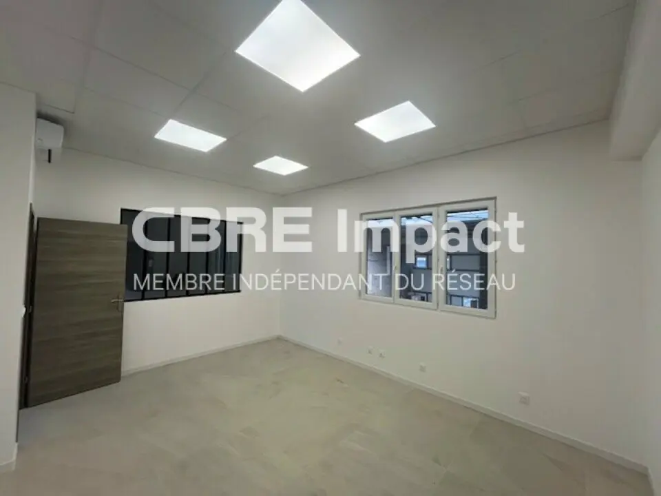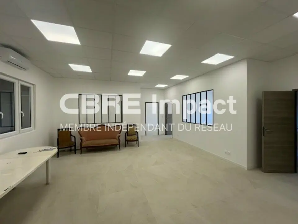 115 m² envi. de bureaux climatisés, répartis en trois bureaux individuels et un espace ouvert (open space).