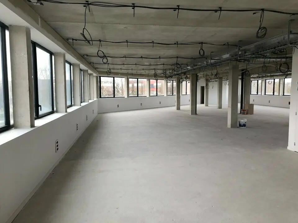 Dans un immeuble neuf de bureaux en R+4, avec une surface totale de 3.787 m² environ, des plateaux de bureaux livrés non cloisonnés, avec sol fini, éclairage au plafond, chauffage et climatisation sont disponibles.. Ces plateaux sont divisibles à partir de 417 m² environ + quote-part des parties communes. Le 1er étage à une superficie de 924 m² environ, le 2ème et le 3ème étage ont une superficie de 938 m² environ et le 4ème étage fait environ 987 m²..
